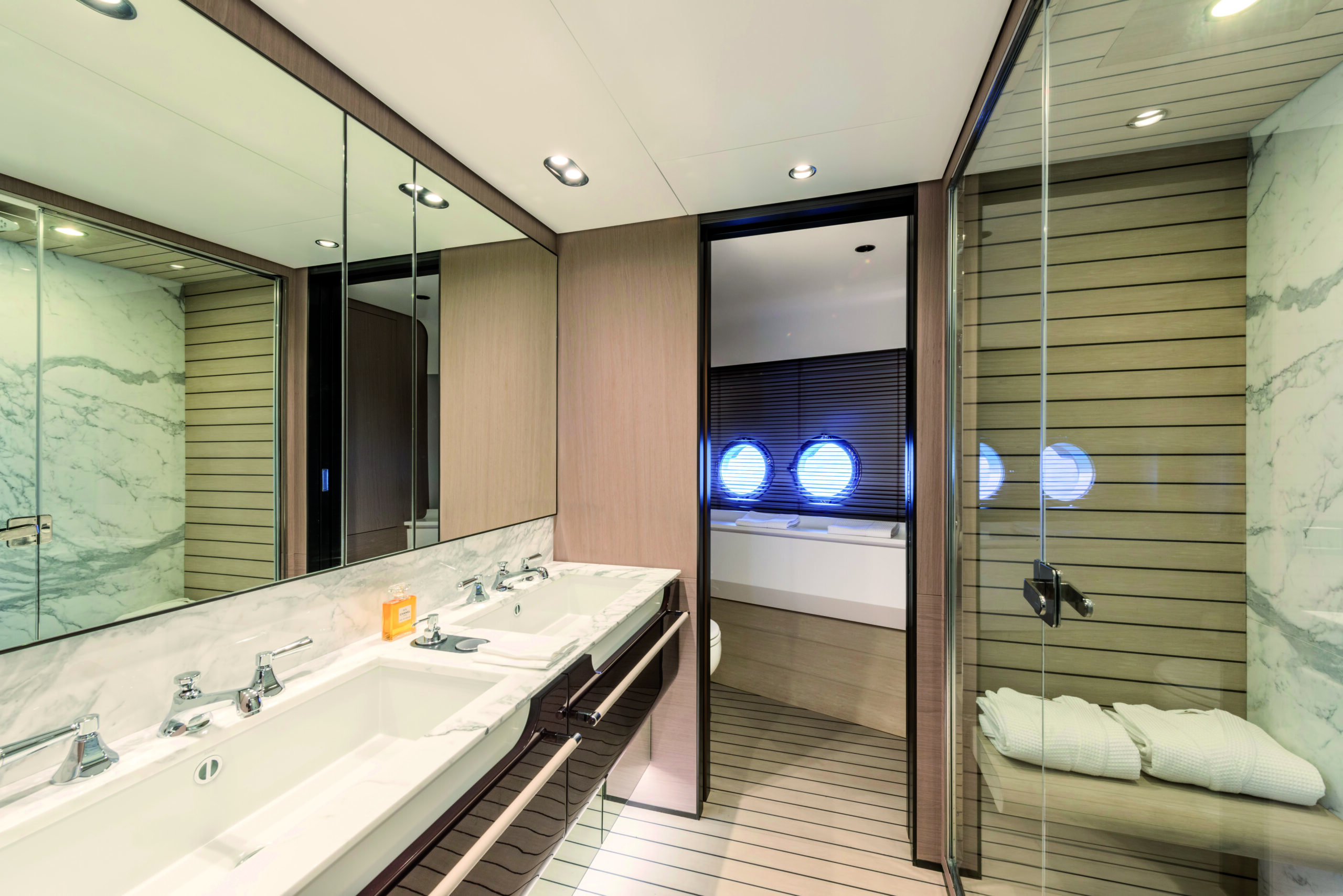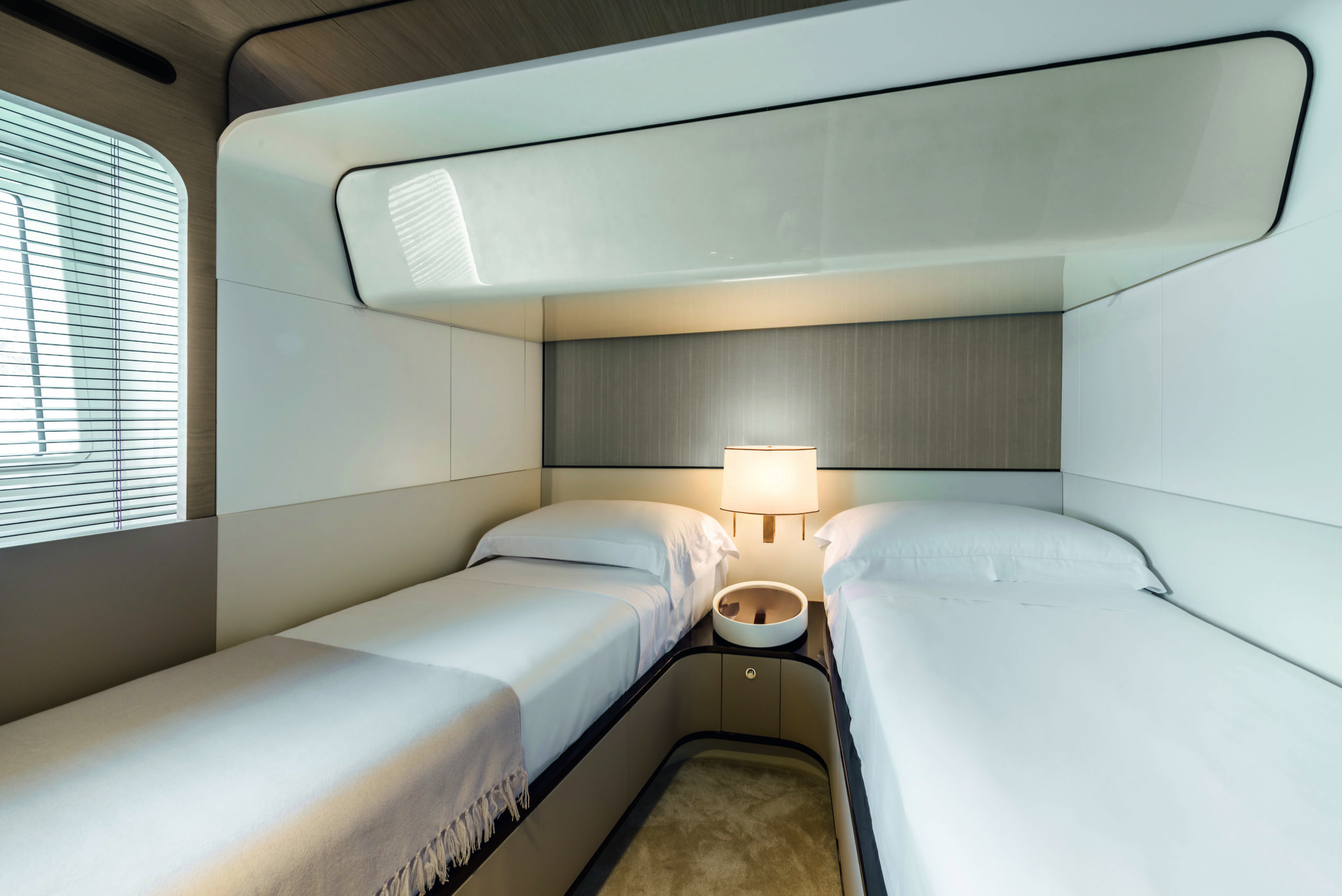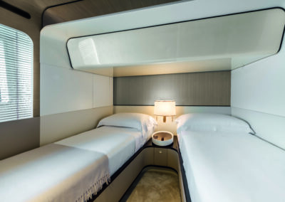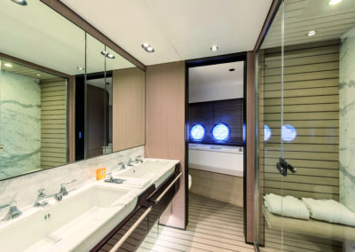 eslora total de 26,09 metros, una manga de 6,30 metros y puede alcanzar una velocidad máxima de 28 nudos con motores MAN V12. Su diseño exterior es de Mancini Design y el interior de Achille Salvagni, construido con fibra de carbono y PRFV (plástico reforzado con fibra de vidrio).