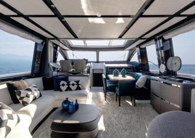 El Azimut S8 destaca por su diseño exterior aerodinámico, obra de Alberto Mancini, y un interior sofisticado diseñado por Francesco Guida. Es un yate de aproximadamente 24.6 metros (81 pies) de eslora, construido con una combinación de fibra de carbono y GRP (plástico reforzado con vidrio), lo que ayuda a reducir el peso y optimizar el rendimiento.